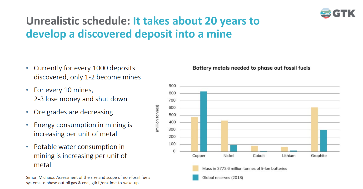 Systemet for å fasa ut fossile brensel er enno ikkje konstruert, og dette vil krevja eit historisk eineståande volum av mineral / metall / materiale av alle slag."