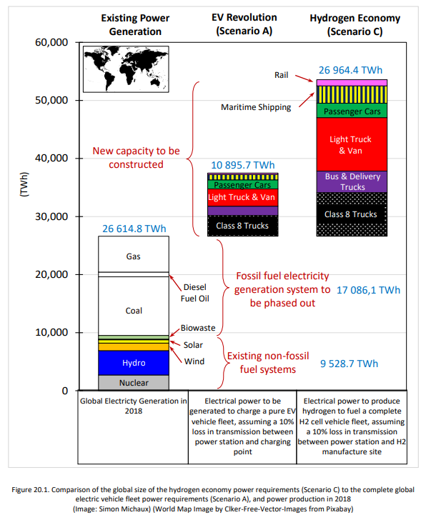 Denne studien undersøkte derimot kor mange elbilar, Hydrogen-celler,biodrivstoff,solcellepanel og vindturbinar som ville vera naudsynt for å fullstendig fasa ut fossile brensel, frå ei botn-opp tilnærming, ved hjelp av nye tidlegare uprøvde utrekningar.
