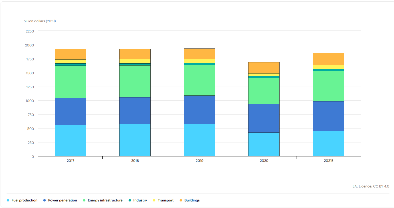 Den pågåande omstillinga av energisystemet dreg med seg potensialet for enorme investeringar. Her kan de sjå ei plansje som viser globale investeringar dei siste åra. Ikkje småtteri. Her snakkar me tett på 2000 billionar $ årleg. Eller 2 000 000 000 000 000$. 2 millionar milliardar$.